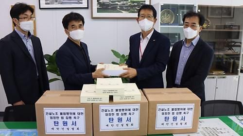 대한건설협회가 건설노조 불법 행위에 대한 엄정한 법 집행을 촉구하는 탄원서를 정부와 국회에 제출했다.