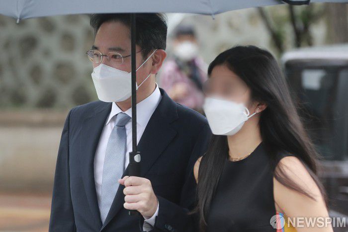 [서울=뉴스핌] 이지민 기자 = 지난 27일 오후. 이재용 삼성전자 부회장이 딸 원주씨와 함께 우산을 쓰고 정의선 현대차그룹 회장 자녀 혼사에 모습을 보였다. 이 부회장 부녀는 이날 예식이 끝난 후 다정하게 팔짱을 끼고 식장을 빠져나갔다.