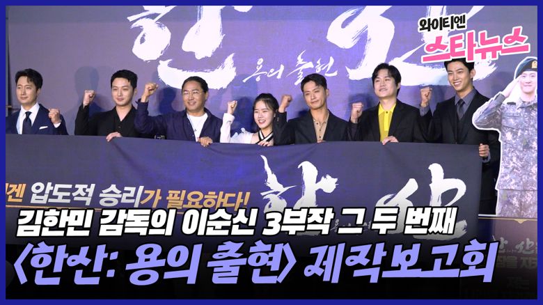 영화 '한산: 용의 출현' 제작보고회가 오늘(28일) 오전 11시 서울 광진구 롯데시네마 건대입구 6관에서 열렸다. 연출을 맡은 김한민 감독과 배우 박해일 씨, 변요한 씨, 김성규 씨, 김성균 씨, 김향기 씨, 옥택연 씨가 참석해 영화에 관한 다양한 이야기를 나눴다.