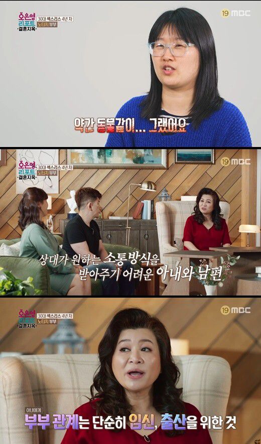 27일 밤 방송된 MBC '오은영 리포트-결혼지옥'에서는 언어적 소통을 원하는 아내와 육체적 소통을 원하는 남편의 고민이 그려졌다.