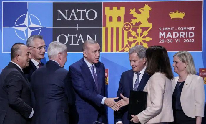 나토 정상회의 전날인 28일(현지시간) 튀르키예가 핀란드, 스웨덴의 나토 가입을 지지한다는 양해각서에 서명했다고 핀란드 대통령실이 밝혔다. 사울리 니니스퇴 핀란드 대통령은 성명을 통해 3국 간 협정에 “터키는 마드리드 나토 정상회의에서 스웨덴과 핀란드의 나토 가입을 지지할 것임을 확인한다”는 내용이 담겼다고 전했다.