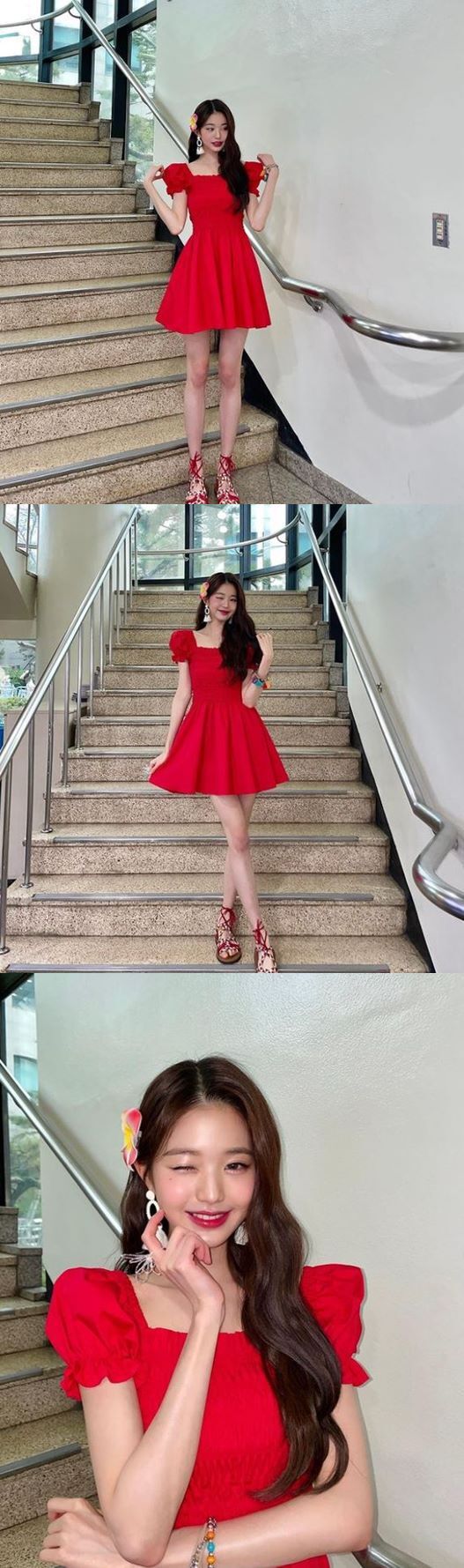 공개된 사진에는 빨간색 원피스 차림으로 포즈를 취하고 있는 장원영의 모습이 담겼다. 장원영은 소멸 직전의 작은 얼굴과 극세사 각선미로 인형 같은 비주얼과 우월한 비율을 자랑하고 있다. 또한 장원영의 상큼한 표정과 러블리한 이목구비가 보는 이들의 감탄을 자아낸다.