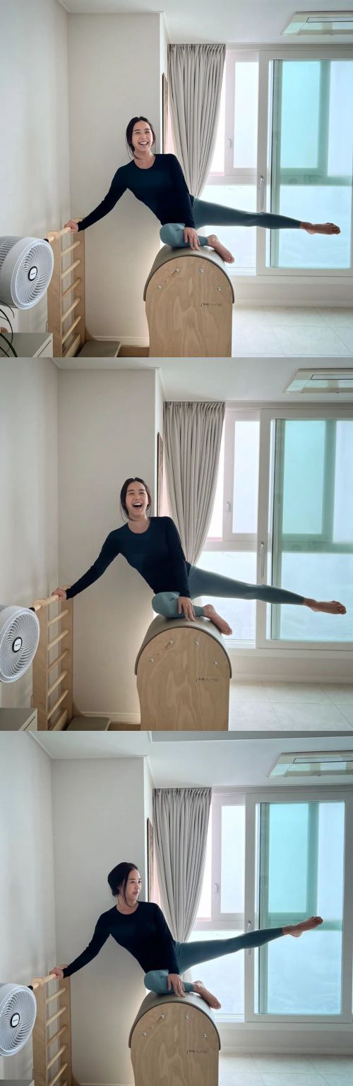 함께 공개한 사진 속에는 코어 단련에 좋다는 색다른 운동 기구 위에서 포즈를 취한 이지애의 모습이 담겨져 있다. 군살없는 늘씬한 몸과 예쁜 미소가 시선을 사로잡는다.
