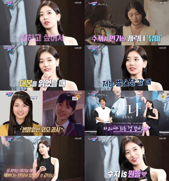 '안나'에서 교복을 착용한 수지는 10년 전 졸업사진과 비교했을 때 변함없는 외모를 과시해 감탄을 자아낸 바 있다. 수지는 동안 비결에 대해 “타고나야 하는 것 같다”며 솔직한 매력을 드러냈다.