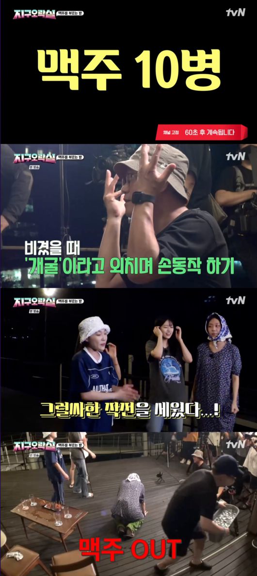 계속되는 광탈로 인해 10병의 술 중에 3병만이 남았다. 나영석 PD는 “저희 분량도 생각해줘라”라고 말하기도. 나영석은 “저희가 술 3병을 넣어드린다. 대신 룰을 바꾸겠다. 비기면 ‘개굴’이라고 외쳐야한다”라며 추가된 룰을 언급했다.