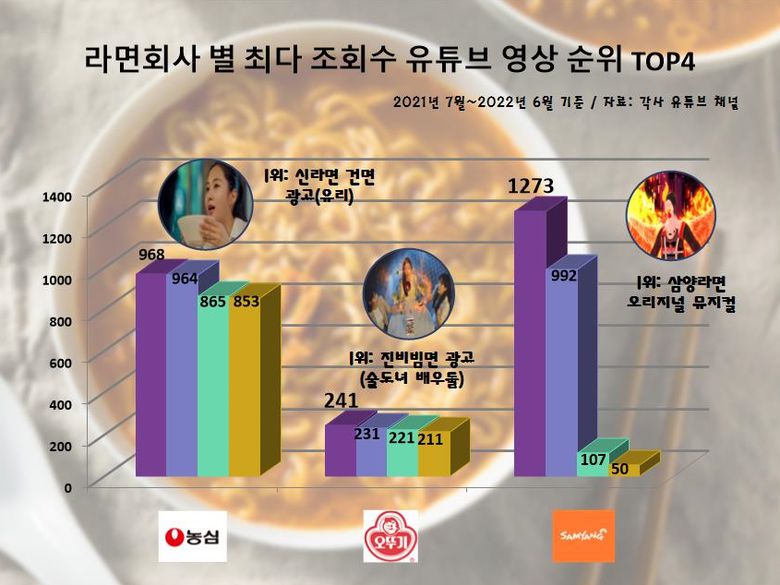 라면회사 별 최다 조회수 유튜브 영상 순위 TOP4. 이미지ㅣ인더뉴스 |