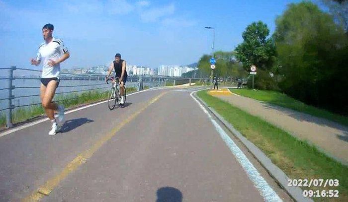 4일 온라인 커뮤니티를 중심으로 한강 자전거 도로를 따라 달리는 손흥민의 모습이 담긴 영상과 사진이 연이어 올라왔다.