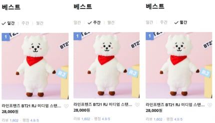 네이버 온라인 스토어 '라인프렌즈(LINE FRIENDS)'에 BT21 미디엄 스탠딩 인형이 재입고 되며 팬들의 관심이 집중되고 있다.