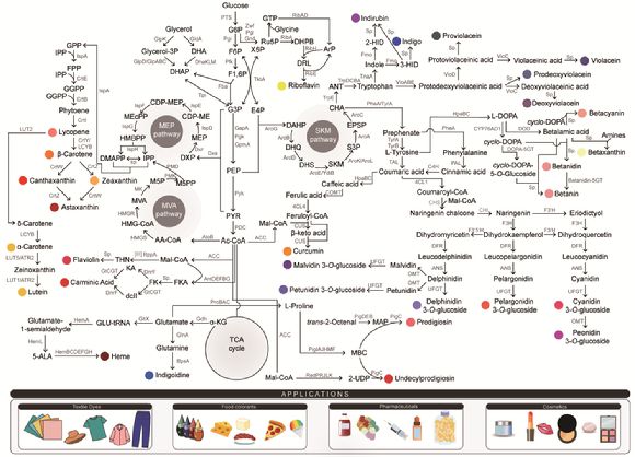 연구팀은 이번 연구에서 미생물 세포 공장을 개발해 생산된 대표 천연색소들의 생합성 경로를 총망라해 최신 연구내용과 흐름을 한눈에 파악할 수 있는 대사회로 지도를 정리했다.