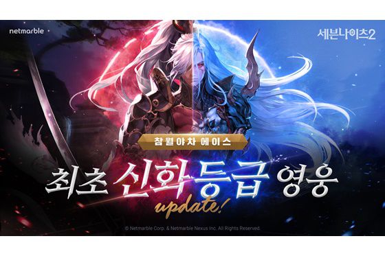 넷마블(대표 권영식, 도기욱)은 모바일 MMORPG ‘세븐나이츠2’에 신규 ‘신화’ 등급 영웅 ‘참월야차 에이스’를 추가했다고 8일 밝혔다.