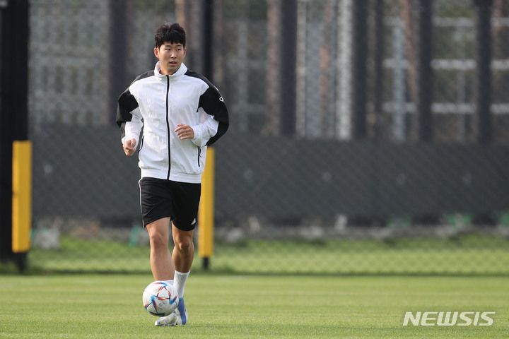 [성남=뉴시스] 권창회 기자 =축구선수 손흥민이 6일 오후 경기 성남시 성남FC 클럽하우스에서 비공개 훈련을 하고 있다. 2022.07.06. kch0523@newsis.com