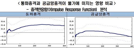 주목할 점은 통화량이 물가에 미치는 영향은 점진적으로 진행되지만 효과는 장기간 동안 지속되는 특징이 있다는 사실이다. 국제 원자재가격 같은 비용 인상 요인은 물가를 단기에 밀어올리는 대신 효과는 단기적으로만 유지된다. 즉, 통화량이 넘쳐서 물가가 오르는 현상은 단기에 잡기가 어렵다는 뜻이다. 이 부연구위원은 "통화 충격의 효과가 공급망 충격에 따른 비용 인상 요인 효과보다 상당히 오랫동안 지속된다는 게 이번 연구 결과"라며 "이는 지금의 공급망 차질 현상이 해소돼도 고물가 상황이 상당 기간 지속될 수 있다는 것을 의미한다"고 말했다.