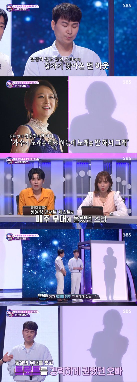 이어 "장윤정 콘서트에 매주 게스트로 무대에 올랐다. 8개월 정도 그 무대에 섰다. 트로트 무대 때 오빠가 초대받아서 왔었는데 무대를 보고 강력하게 트로트를 권했다"고 덧붙였다.