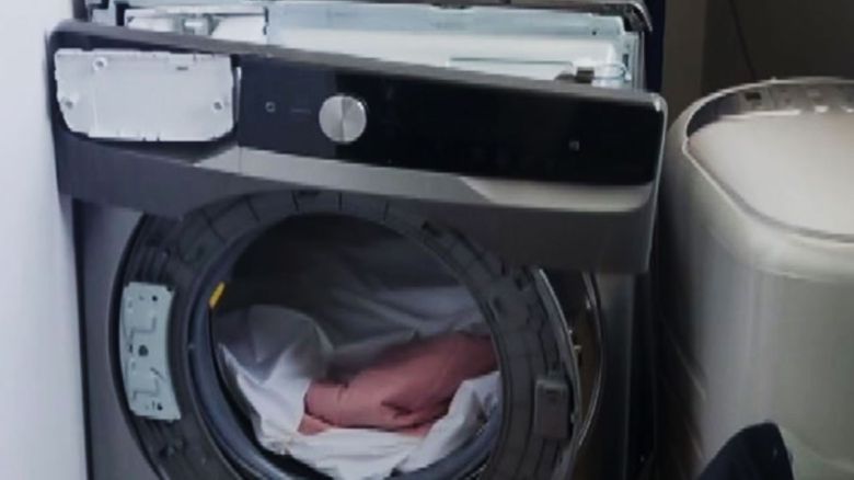 폭발 당시 세탁기에는 아기용 방수패드와 티셔츠가 들어있었습니다.