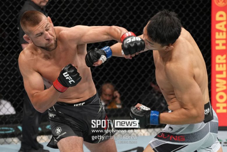 정다운은 2015년 프로로 데뷔해 빠르게 성장한 대한민국 차세대 에이스. 2019년 UFC에 입성해 5경기 4승 1무를 기록하고 있었는데 이번에 옥타곤에서 처음 패배를 맛봤다.