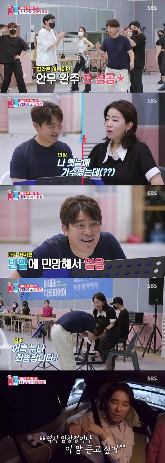 서하얀은 “결국엔 잘 할 거다. 뮤지컬로 상도 받고 싶다고 하지 않았냐”며 남편을 응원했다. 이에 자극받은 임창정은 “상 타려고 열심히 하는 건 아니지만 주면 또 받아야지”라고 너스레를 떨며 금세 본래의 해맑은 모습으로 돌아왔다.