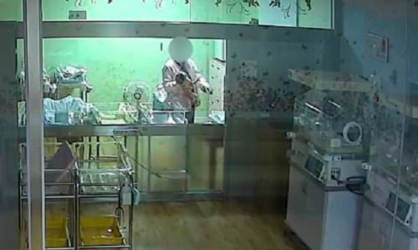 부산 한 산부인과에서 간호사가 생후 5일 된 신생아를 한 손으로 거칠게 다루고 있다. /조선DB |