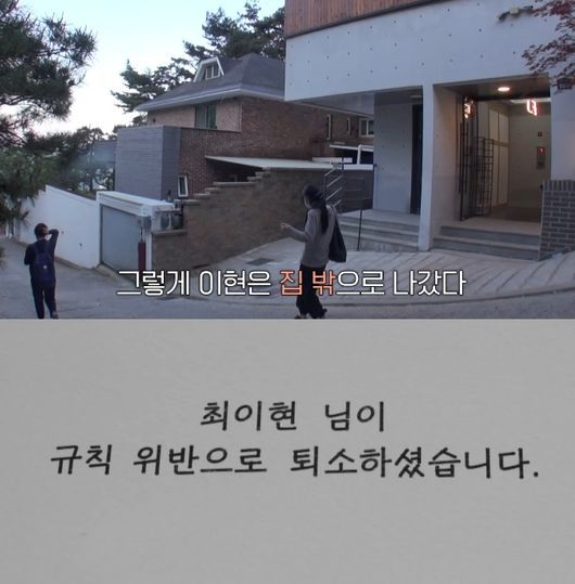 집을 나오기 전 그는 "저 미팅 다녀올게요 밥 잘 챙겨드세요"라는 메시지를 남기기도 했다. 하지만 그날 밤, 출연진들의 앞에 그날 밤, 편지 한 통이 도착했고 그 곳에는 "최이현 님이 규칙 위반으로 퇴소하셨습니다"라는 문구가 적혀 있어 출연진들을 충격에 빠트렸다.