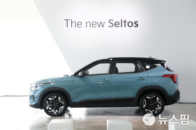 [서울=뉴스핌] 조재완 기자 = 기아가 27일 개최한 미디어 시승식에 전시된 '더 뉴 셀토스'. 2022.07.27 chojw@newspim.com