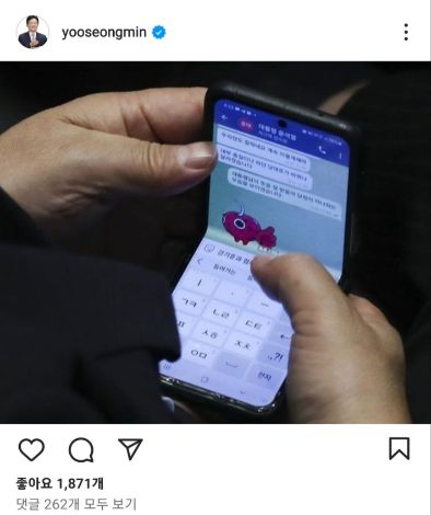 ◇ 김현정> 조롱하려고 일부러 그렇게 평론하는 거다. 유승민 전 원내대표의 SNS도 오랜만에 굉장히 뜨겁게 또 주목을 받았는데 저 사진을 하나, 아무 말 없이, 이 권성동 원내대표가 대통령하고 문자하는 사진을 딱 올렸어요. 이거는 무슨 의미.