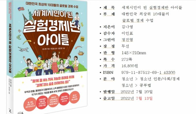 개인만이 아닌 사회, 국가, 나아가 국가 간의 연결된 경제를 다양한 관점으로 이해할 수 있도록 구성한 '세계시민이 된 실험경제반 아이들'이 출간됐다. 13년 넘게 실험경제반 학생들과 함께 진행한 수업 내용을스토리텔링 형식으로 재구성해 담아낸 '최강의 실험경제반 아이들'의 두번째 책이다.
