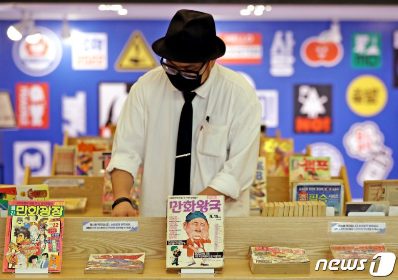 (서울=뉴스1) 장수영 기자 = 29일 서울 중구 SBA 서울애니메이션센터 만화의집에서 전시 관계자가 만화잡지 창간호전을 준비하고 있다. 이번 전시는 29일 오후 5시에 개막해 내달 28일까지 진행된다. 전시에는 80년대 부터 2000년대 까지 출간한 만화잡지 창간호 실물을 볼 수 있으며 한켠에 마련된 전자책으로 내용을 열람할 수 있다. 2022.7.29/뉴스1