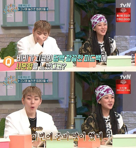 비비는 지코와 앨범 발매를 앞두고 서로의 노래를 미리 듣고 소감을 들었다고 밝히며 지코의 담백한 반응에 서운했다고 밝혔다.