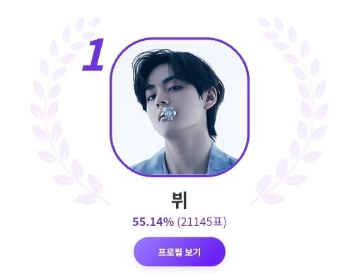 뷔는 총 3만 8348표 중 2만 1145표를 얻으며 네티즌이 인정한 최고의 '출구봉쇄 매력남'에 등극했다.