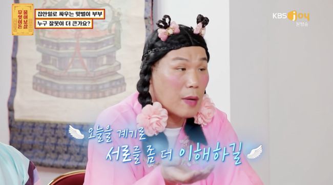 한편 보살을 찾은 부부는 한 쌍 더 있었다. 김준웅, 김쥬리 부부는 가사분담 전쟁을 겪는 맞벌이 부부로 "가족을 위해 둘 다 열심히 살다보니 집안일로 자주 다투게 되는데 누구의 잘못인지 판단을 못하겠다"며 토로했다.