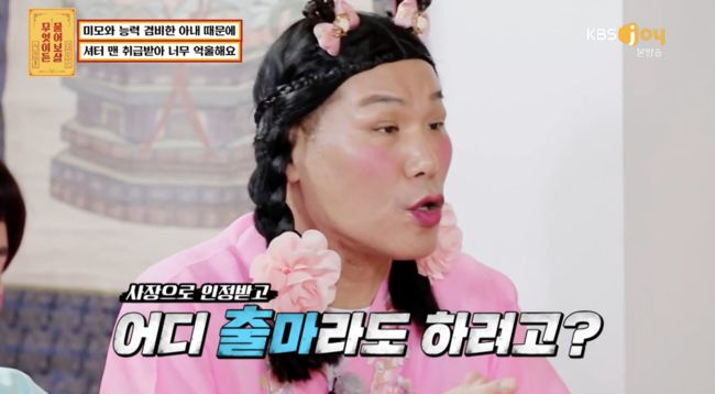 이수근은 "그렇게 살아 그냥. 그럴 것 같은데, 뭐"라고 농담, 남편은 "아내가 예쁘고 키도 크고 미용도 잘하는 건 안다. 그래도 자주그 말을 들으니까 섭섭하다. 아내가 미용에만 전념할 수 있도록 경영 및 고객관리는내 몫이다. 지금까지 힘들게 살아 여기까지 올라왔는데 억울하다"고 토로했다.
