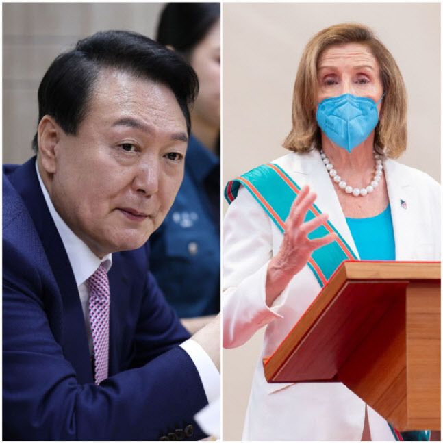 윤석열(왼쪽) 대통령이 4일 방한 중인 낸시 펠로시 미국 하원의장과 오후에 통화했다 (사진=연합뉴스) |