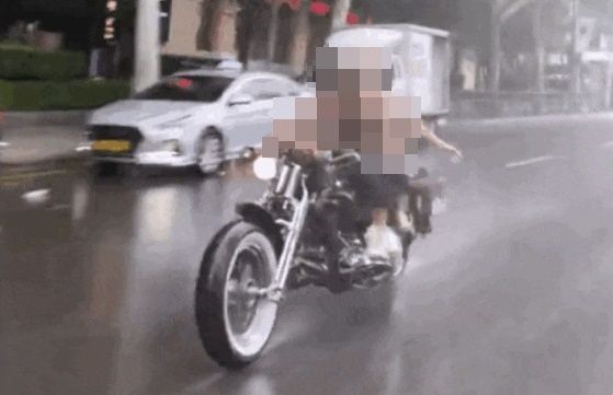 앞서 A씨는 지난달 31일 서울 강남 일대에서 남성 유튜버 B씨와 비를 맞으며 오토바이를 탔다. 당시 A씨는 엉덩이 등이 노출되는 수영복을 착용했고 B씨는 상의를 입지 않은 상태였다.
