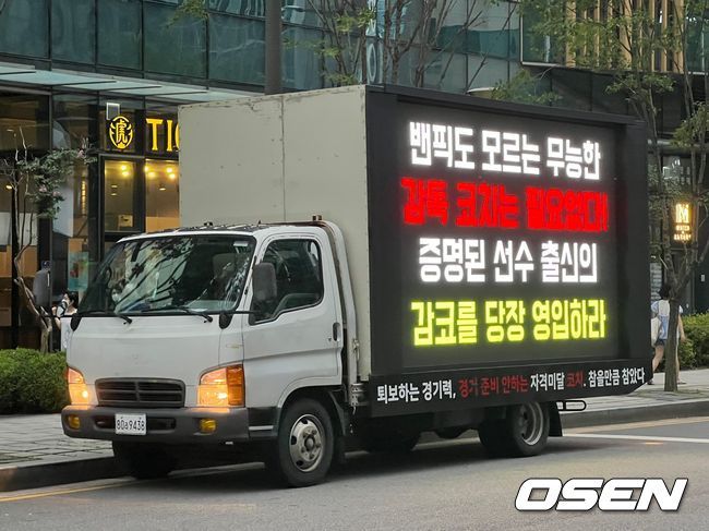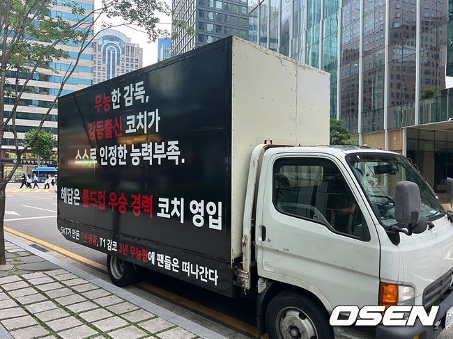 [OSEN=종로, 고용준 기자] 감코진 교체 및 추가 영입을 요구한 일부 팬들의 예고 대로 T1 팬들의 트럭 시위가 재개됐다.