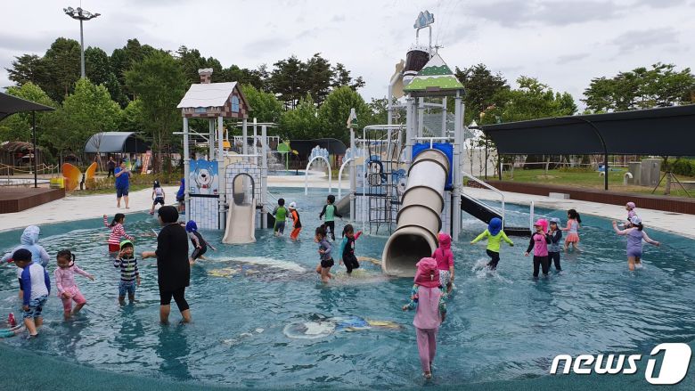 (서울=뉴스1) 김송이 기자 = 불볕더위가 이어지고 있는 올여름 동네에서 가까이에 걸어갈 수 있는 물놀이터가 전국 곳곳에서 만들어지며 시민들에게 많은 인기를 사고 있다. 하지만 비키니 등 일부 엄마들이 노출이 과한 의상을 착용한 것을 두고 맘카페에서는 갑론을박이 뜨겁다.