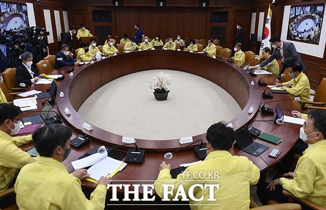 [더팩트ㅣ이동률 기자] 한덕수 국무총리가 12일 오전 서울 종로구 정부서울청사에서 열린 코로나19 중앙안전대책본부(중대본) 회의 및 집중호우 대처상황 점검회의를 주재하고 있다.