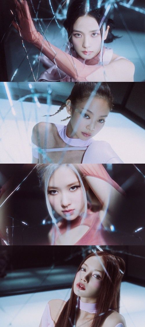 지수는 네크라인의 커다란 리본으로 우아한 분위기를 연출했고, 제니는 젬스톤을 활용한 아이 메이크업으로 색다른 매력을 예고했다. 로제는 오묘한 애쉬그레이톤 헤어를 양 갈래로 묶어 역동적인 섹시미를 자아냈으며, 붉은색 긴 생머리의 리사는 깊고 진한 눈빛으로 화면을 가득 채웠다.