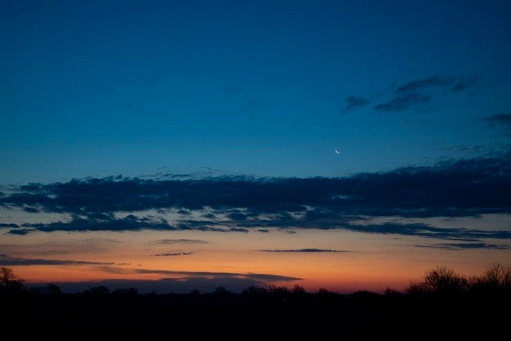 강화도의 항해박명. 개밥바라기와 초승달이 이처럼 뚜렷이 보이면 항해박명쯤 된다. (사진=이광식)