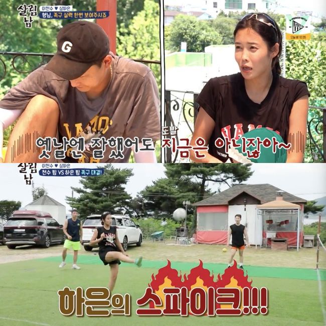 한편, 이천수-심하은 가족은 이천수의 후배 가족들과 함께 인천 강화도로 여름 여행을 떠났다. 이천수의 후배들은 이천수를 향해 “아우라가 느껴진다”며 칭찬을 아끼지 않았다. 이에 이천수는 뿌듯해 했다. 이후 이들은 이천수에게 족구 대결을 제안했다. 이천수 아내 심하은은 이천수를 도발. 결국 이천수 팀 대 심하은 팀으로 대결을 펼쳤다. 초반에 여유로운 모습을 보이던 이천수는 남다른 실력을 뽐내는 심하은의 모습에 당황했다. 결국 진지한 대결을 두 부부. 그러나 제 실력을 발휘하지 못하는 이천수의 모습에 웃음을 안겼다.