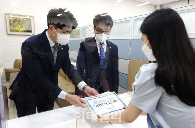 [이데일리 방인권 기자] 진성준 더불어민주당 원내수석부대표(오른쪽)와 오영환 원내대변인이 17일 오전 국회 의안과에 윤석열 대통령 집무실-관저 관련 의혹 및 사적 채용 진상규명을 위한 국정조사 요구서를 제출하고 있다.