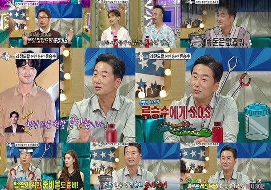 MC 유세윤은 “아무도 몰랐으면 좋겠는데 땅꾼으로 유명해졌다”라고 너스레를 떨었고, 김구라는 “류승수가 정말 아는 건 많은데 돈이 없다”라고 덧붙여 녹화장을 웃음바다로 만들었다.