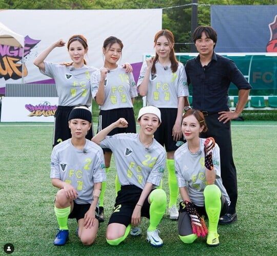 공개된 사진 속에는 '골 때리는 그녀들'에 출연 중인 FC 탑걸 채리나, 유빈, 간미연, 김보경, 문별, 아유미와 감독 최성용의 모습이 담겼다. 이들은 파이팅 넘치는 포즈를 취하며 승리 의지를 불태우고 있다.