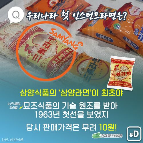 삼양라면은 서민들의 배고픔을 해결하기 위해 개발됐다는데요. 판매가격은 10원, 지금으로 치면 1천원 정도였죠.