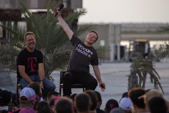 지난 25일 미국 텍사스에서 일론 머스크 테슬라 CEO가 우주 로켓 사업을 하는 스페이스X 행사에 참석하고 있다. 로이터=연합뉴스 |