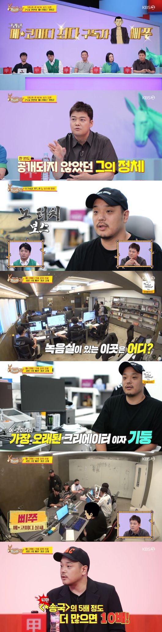 28일 방송된 KBS2 '사장님 귀는 당나귀 귀'에서는 전세계구독자 천만명의 웃음을 책임지고 있는 대한민국 최초 코미디 레이블 '메타코미디' 대표 정영준이 새 보스로 등장했다. 이와 함께 메타코미디 소속 크리에이터인 '빵송국'의 개그맨 이창호, 곽범이 스페셜MC로 함께했다.