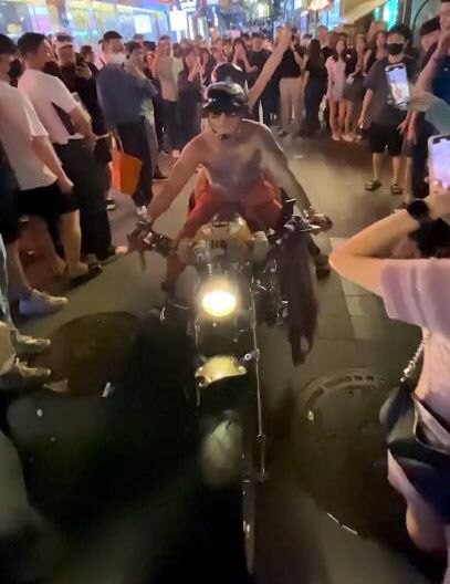 27일 이태원에 나타난 강남 오토바이 남녀. (영상=SNS 캡처) |