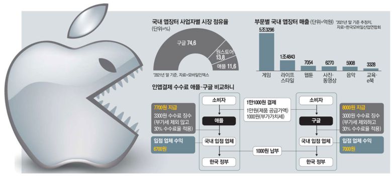 황 회장은 "애플의 주장처럼 그들이 부가가치세 징수·납부와 무관하다면 입점 업체가 소비자로부터 부가가치세를 따로 받아 납부할 수 있어야 한다"며 "하지만 인앱결제 강제로 애플의 결제 시스템만 이용하게 만들어 놓고 입점 업체에 따로 부가세를 걷어 납부하라고 요구하는 셈"이라고 비판했다.