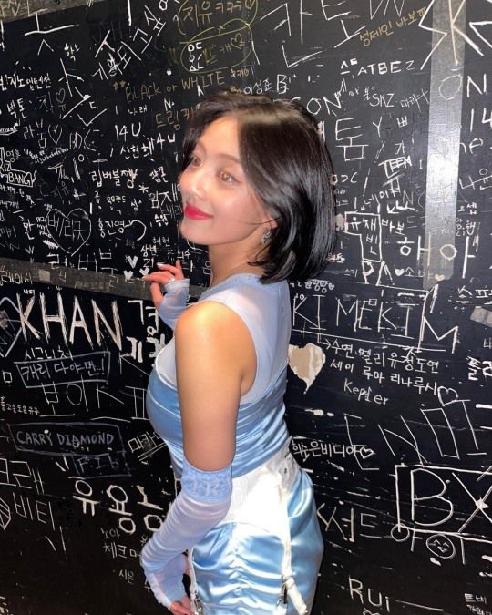 공개된 게시물 속에는 트와이스 지효가 벽에 기댄 채 포즈를 취하고 있는 모습이 담겨있다.