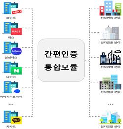 간편인증은 긴 패스워드 입력 대신 PIN번호, 바이오정보, 패턴 입력 등 간편한 방법으로 전자서명 서비스를 이용하는 방식을 뜻한다. 간편인증 통합모듈은 다양한 간편인증 서비스들을 통합 중계하기 위해 인터넷 기업들의 시스템에 설치되는 프로그램이다.