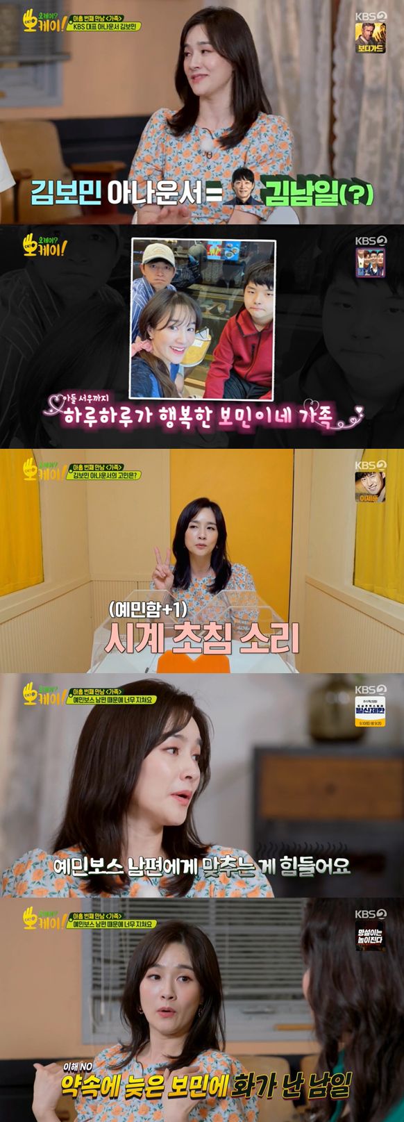 지난 6일 방송된 KBS 2TV '오케이? 오케이!'(이하 '오케이')는 가족이라는 주제로 진행, 김보민이 오케이 힐러로 출연해 이야기를 나눴다.