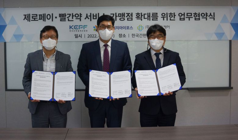 [헤럴드경제=박자연 기자]한국간편결제진흥원은 씨에이치아이포스, 이팜헬스케어와 제로페이 및 빨간약 서비스 가맹점 확대를 위한 업무 제휴 협약을 체결했다고 밝혔다.